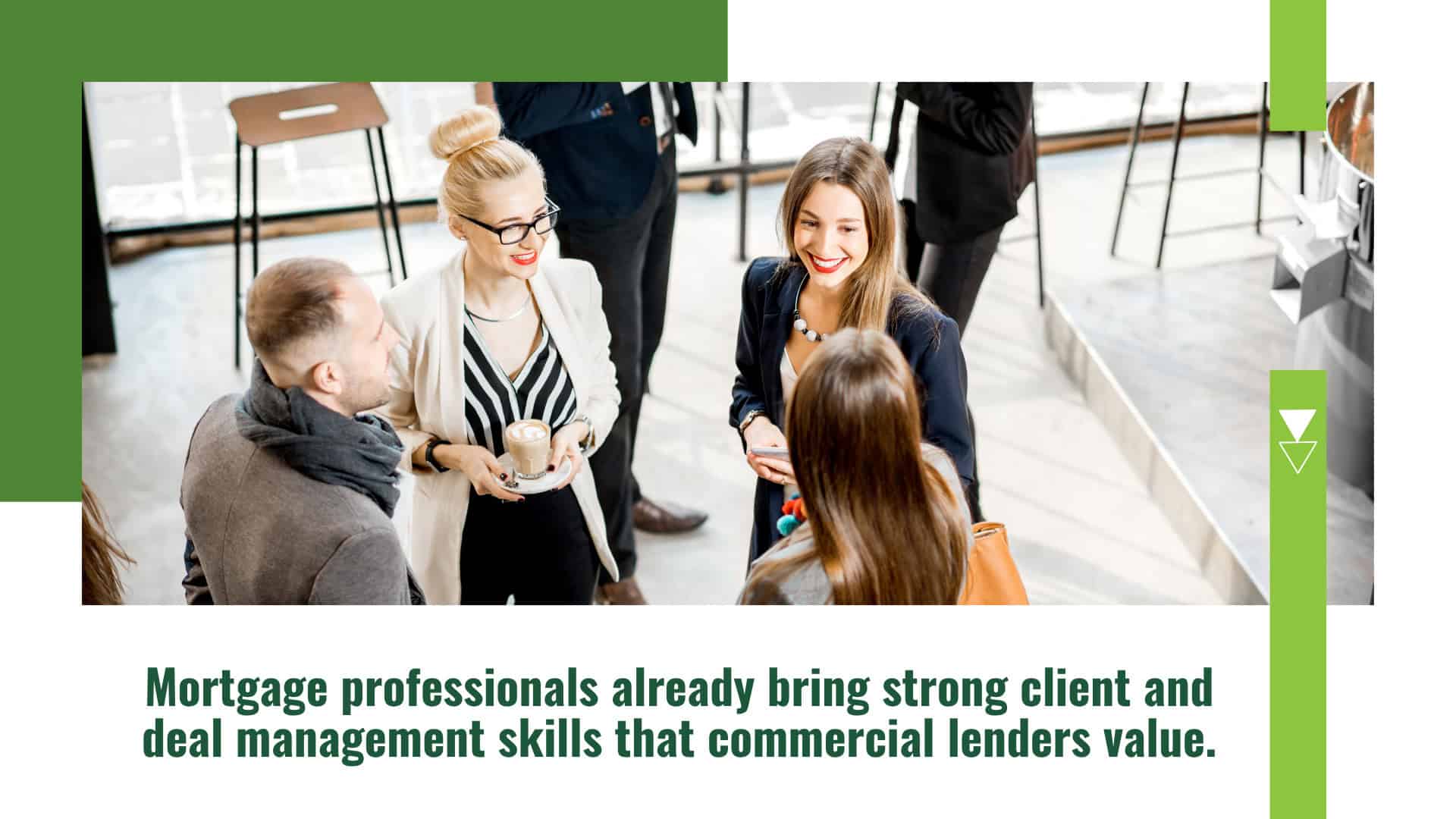 Many commercial lenders actively like working with professionals who come from residential mortgage broker backgrounds, assuming the transition is handled correctly.
